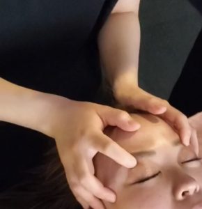 頭蓋から引き上げ、デコルテの巡りも重視し、フェイスラインもしゅっと。