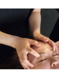 頭蓋から引き上げ、デコルテの巡りも重視し、フェイスラインもしゅっと。